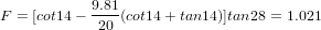 The factor of safety for an infinite slope in purely frictional material, and ground water at the surface with horizontal seepage is given by,