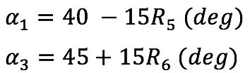 2. A point p is calculated as the intersection between the line passing through the first vertex at the (passive) angle α1 and the line passing through the last vertex at the (active) angle α3, where: